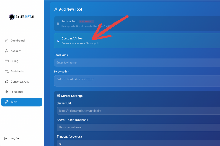 - Select Custom API Tool
